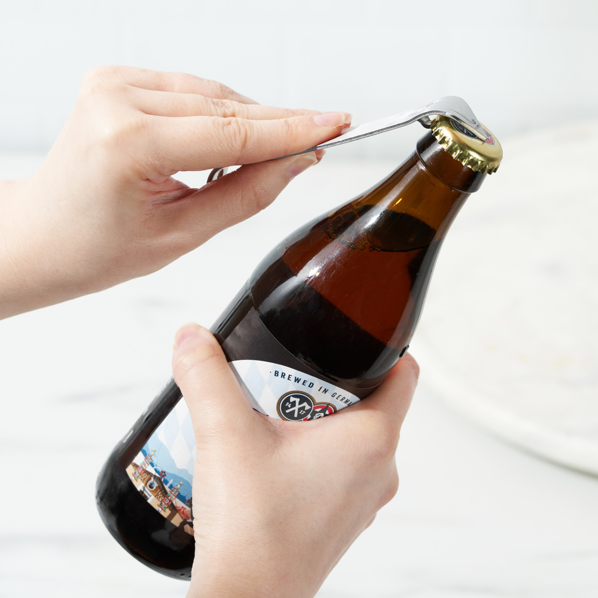 Simple yet always useful, this stainless steel classic Churchkey Bottle & Can Opener is the key to effortless opening. Either end will pop the cap off any beer or soda bottle—use the pointed side to tackle old-school cans, too. The True Church Key Steel Bottle Opener is a blend of old fashioned charm and modern functionality. Crafted from sturdy stainless steel, this opener is a must-have tool for your kitchen, bar, or camp kit. Ditch the struggle with stubborn bottle caps and can lids. With our church key can opener, opening your favorite beer or canned goods becomes a breeze. The hand can opener manual design gives you control over the opening process, preventing accidental spills or splashes. Need a bottle cap opener or a can punch opener? This tool does both! The sharp end can puncture cans effortlessly, and the other end is perfect for popping off bottle caps. You can also use it as a bottle opener bartender for your home bar. Thanks to its compact size, it's also a great choice as a camp can opener or a travel accessory.