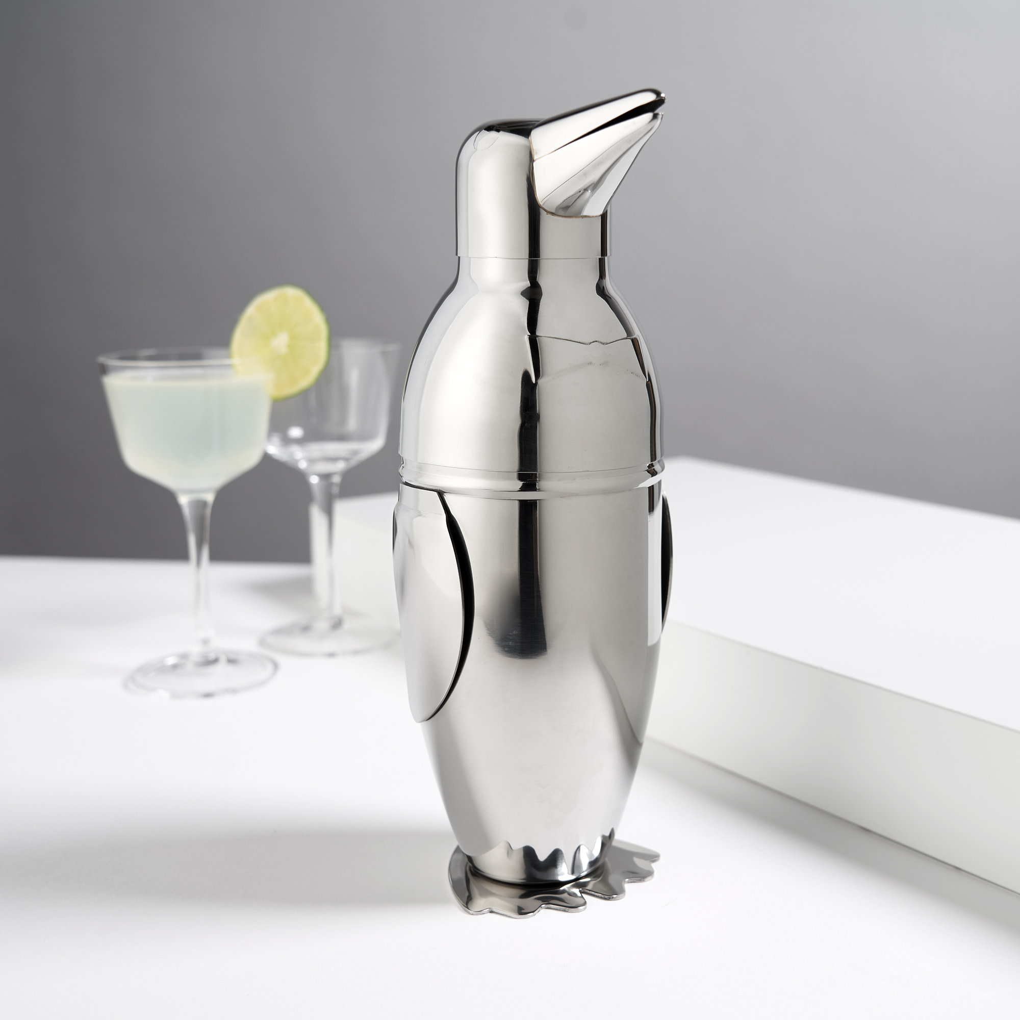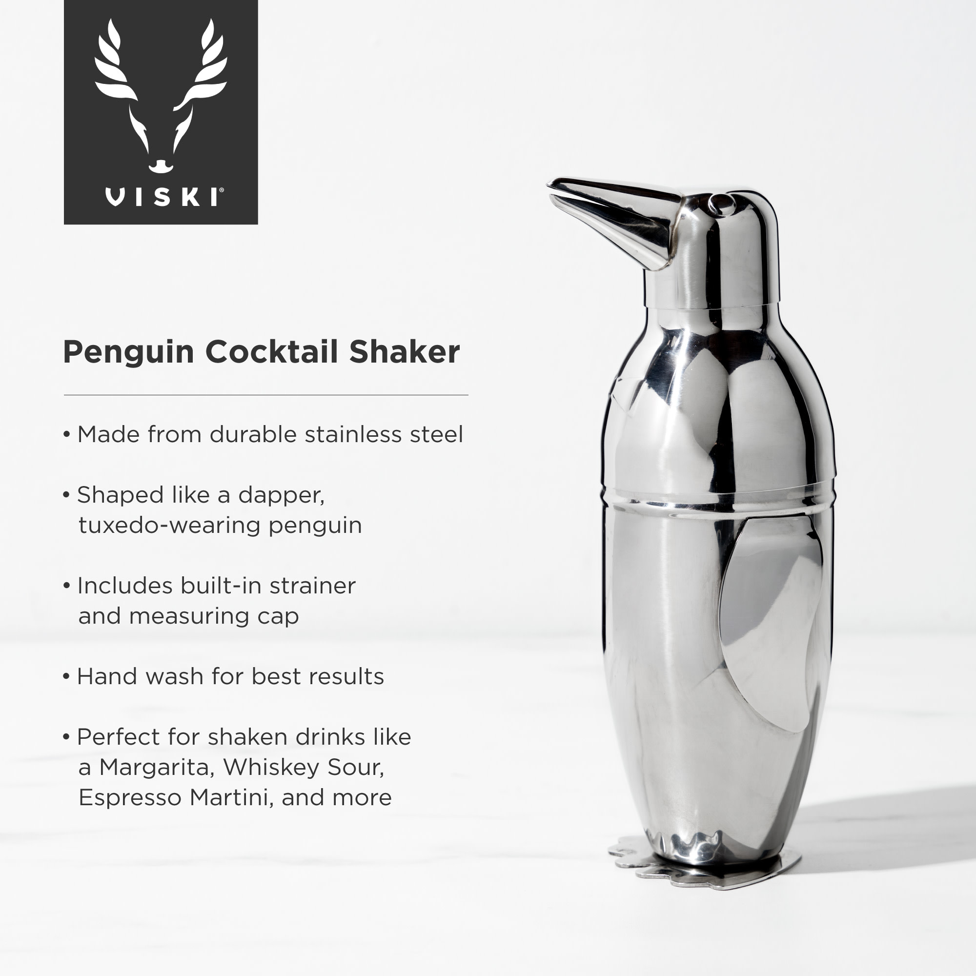 Bring playful sophistication to your bar setup with the Viski Penguin Cocktail Shaker. This 17 oz stainless steel cobbler shaker is shaped like a penguin, adding whimsical style to your bartender accessories while mixing perfect drinks. It features a built in strainer for clean pours, making it ideal for crafting margaritas, whiskey sours, and other favorite cocktails. Whether you're mixing drinks on the patio, setting up your bar cart accessories, or searching for wedding or housewarming gifts, this shaker fits every need. It’s a fun yet functional tool for anyone building their bartending supplies or expanding their drink mixers for cocktails. The polished finish brings flair to home bar accessories while ensuring durable performance. A great choice for anniversaries, holidays, or bachelorette parties, these cocktail shakers blend seamlessly into any bar essentials collection. Use them as shaker bottles for cocktails or as a conversation-starting bar tools at your next event. Elegant, reliable, and giftable. These penguin shakers are made for those who love to entertain with style.