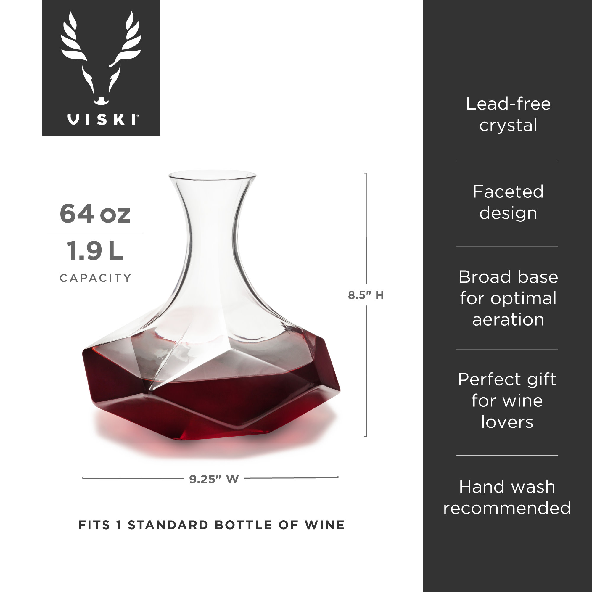 Update your bar cart with this faceted crystal decanter. Viski’s modern design gives contemporary sophistication to the classic decanter, while the construction perfectly aerates your wine. Lead-free crystal decanter Star-shaped base Faceted design Set of 1 Stylish and sparkling, this stunning decanter is beautiful and practical. Upgrade your wine-sipping experience with Viski glassware.