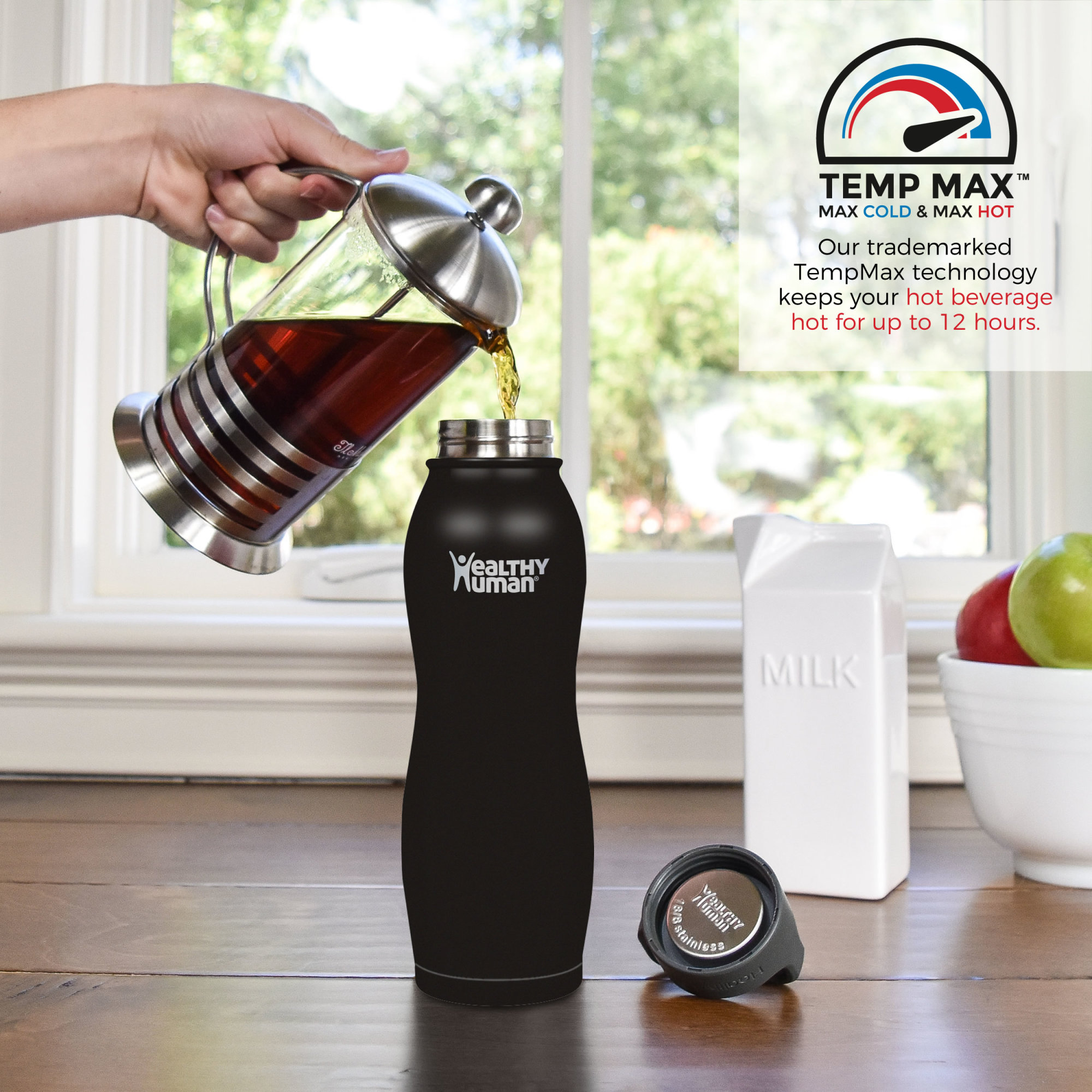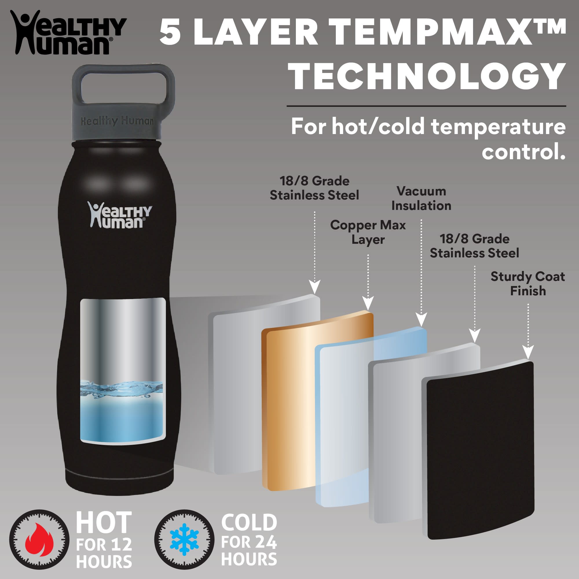 Stay hydrated with the Healthy Human Stainless Steel Curve Water Bottle, the perfect blend of style and functionality. Winner of the CNN Best Bottle Award for 2020, 2021, 2022, and 2023, this insulated water bottle is engineered to keep your beverages at the ideal temperature. With its advanced TempMax copper-coated insulation and double-wall vacuum technology, it maintains liquids cold for 24 hours, hot for 12 hours, and piping hot for 6 hours. The patented Curve design makes it a standout among stainless steel water bottles. Its unique, easy-to-grip shape is perfect for on-the-go hydration, whether you’re hiking, camping, or tackling your daily routine. The wide mouth opening allows for easy filling, adding ice cubes, and sipping, while the 100% leakproof, stainless steel-lined lid ensures a secure experience every time. Durable and rust-proof, this travel water bottle is crafted from food-grade 18/8 stainless steel, making it the ultimate companion for any activity. Lightweight yet sturdy, it’s designed for use as a gym water bottle, work essential, or travel companion. Each bottle comes with a steel-lined lid, sticker, and Hydro Guide, ensuring you have everything you need for convenient hydration throughout your day.