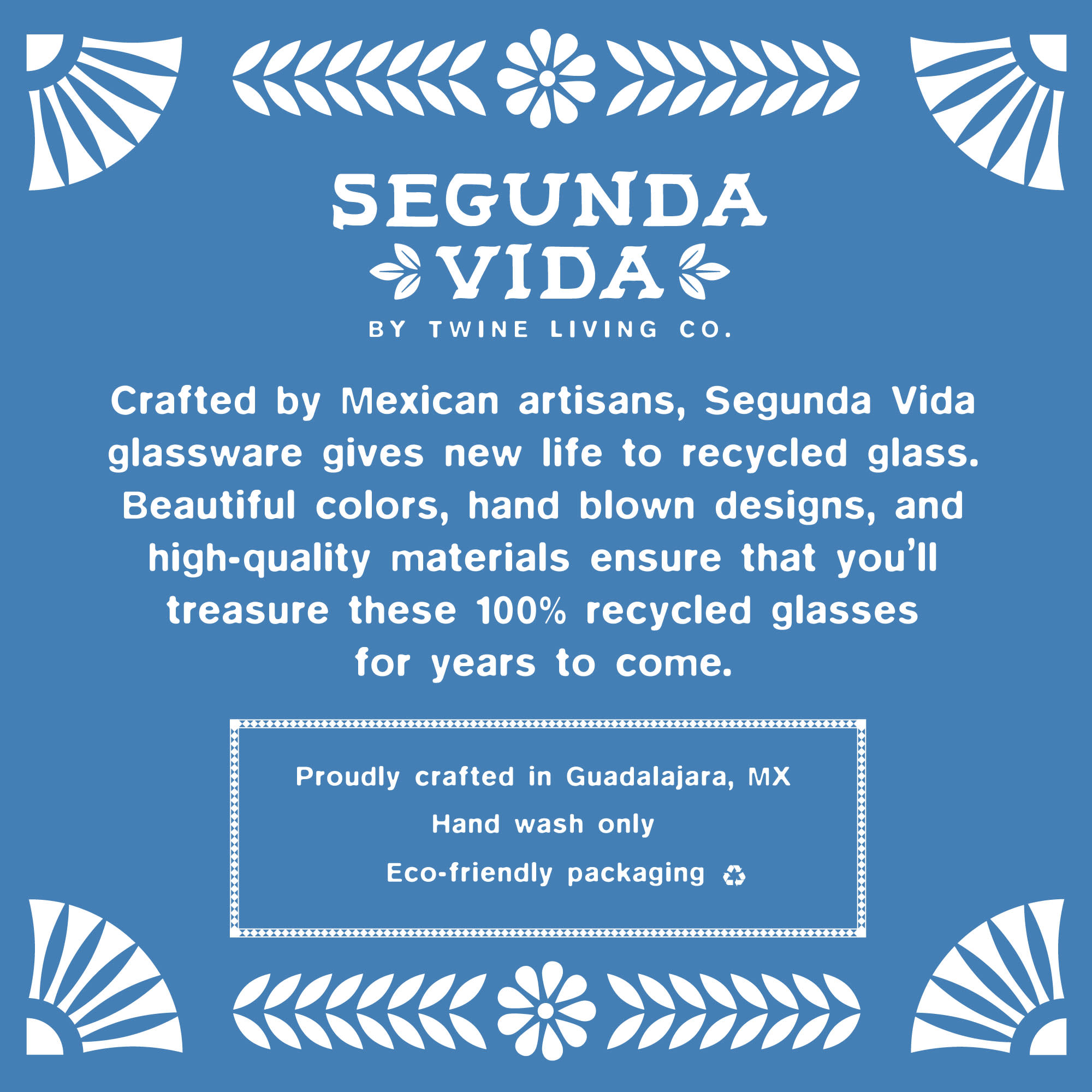 Handcrafted from recycled glass by skilled Mexican artisans, these glasses bring artistry and celebration to your gatherings. Each glass is individually hand-blown, featuring a vibrant, confetti-inspired design. The wide stem design adds a modern touch to your drinkware collection. Ideal for serving margaritas or any festive cocktail, these 10-ounce glasses combine stunning craftsmanship and function.