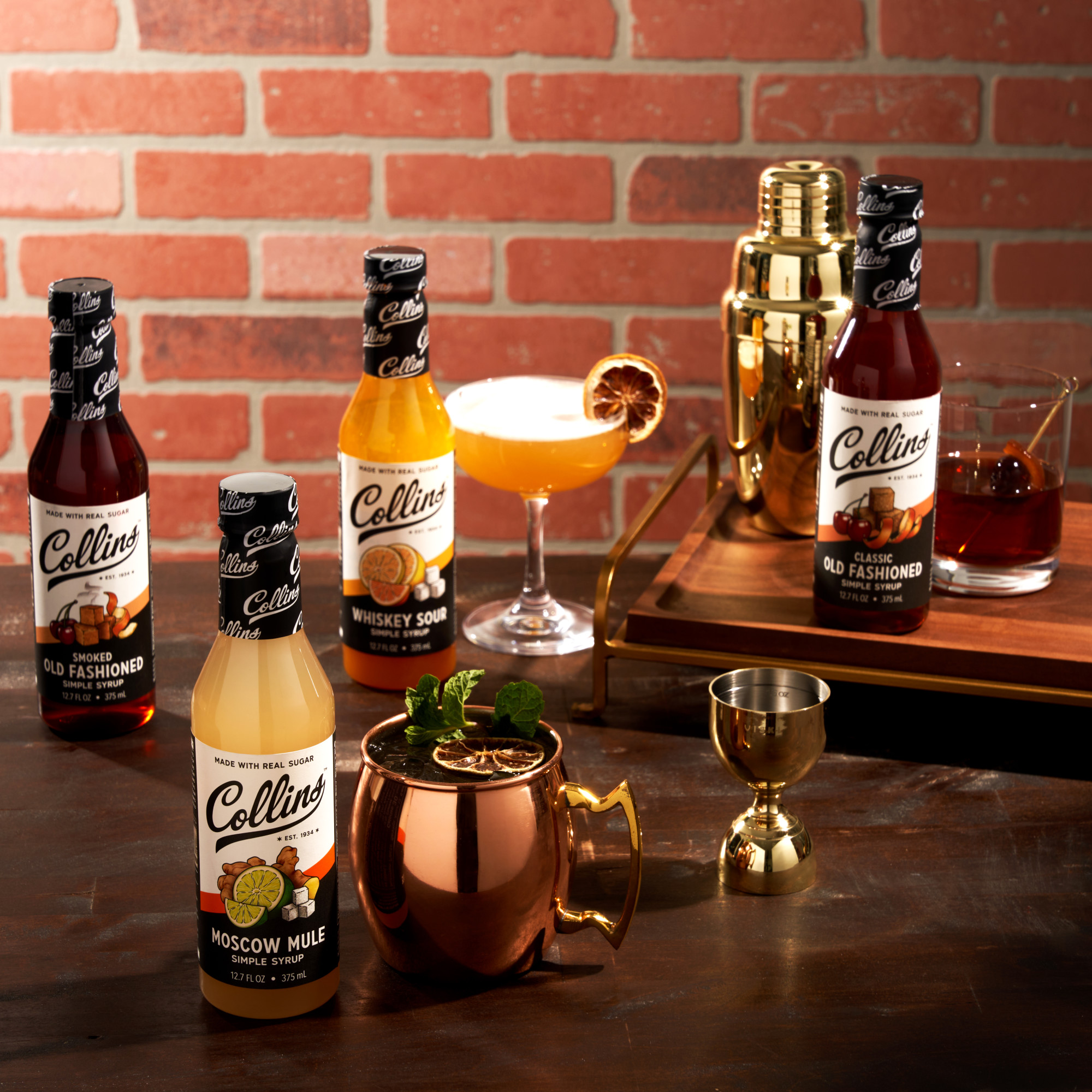 Collins Smoked Old Fashioned Syrup is an easy way to craft a delicious cocktail at home. Made with real sugar and tart cherry juice with a hint of smoke and cinnamon, it pairs perfectly with whiskey for a Smoked Old Fashioned or can be used in many classic cocktails.