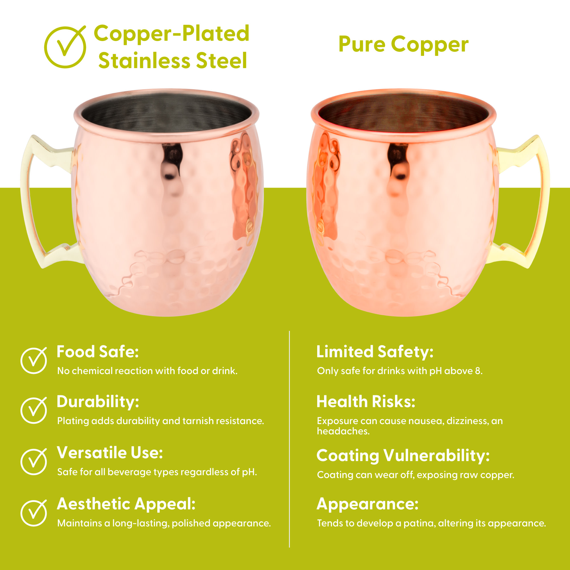 A stylish and functional addition to your cocktail collection, this Hammered Copper Plated Mug is perfect for serving the classic Moscow Mule or other refreshing beverageges. It features a durable stainless steel construction with a stunning copper-plated hammered finish that adds a handcrafted feel, while the brass handle offers both elegance and comfort. This mug is as eye-catching as it is practical.