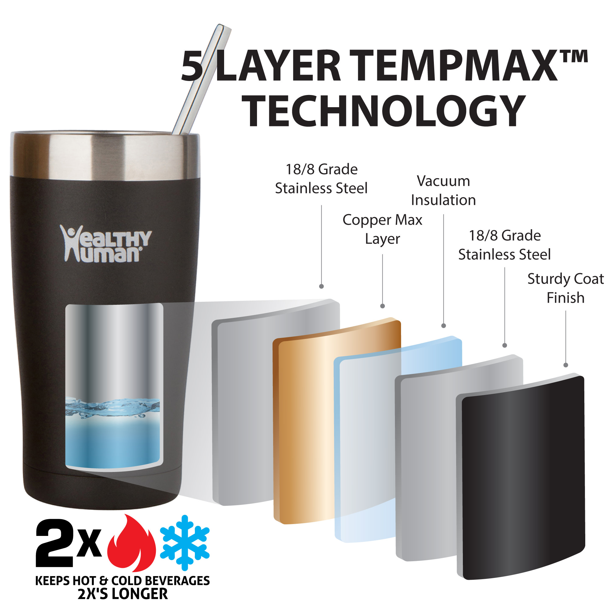 Elevate your hydration game with the Healthy Human Cruiser, a versatile coffee tumbler designed to keep your drinks at the ideal temperature. Whether you’re sipping hot chocolate, cappuccino, latte, or enjoying a chilled cold brew coffee, lemonade, or iced tea, this travel coffee tumbler ensures your beverage stays hot or cold twice as long as traditional cups. Crafted from 100% superior food-grade 18/8 stainless steel, this tea tumbler features advanced TempMax copper-coated insulation with a double-wall vacuum design, making it durable and reliable for everyday use. Ideal for work, school, or leisure, this coffee to go tumbler is splash-proof, lightweight, and easy to carry wherever your day takes you. The clear lid offers spill-proof convenience, while the reusable stainless steel straw and included straw cleaner add functionality for those who prefer sipping their favorite beverages on the go. Whether you’re filling it with milk, lemon tea, or iced coffee, this reusable coffee cup with lid is perfect for the office or outdoor adventures. With accolades like the CNN Best Bottle Award for 2020, 2021, 2022, and 2023, Healthy Human combines style and performance for your everyday drinkware needs.
