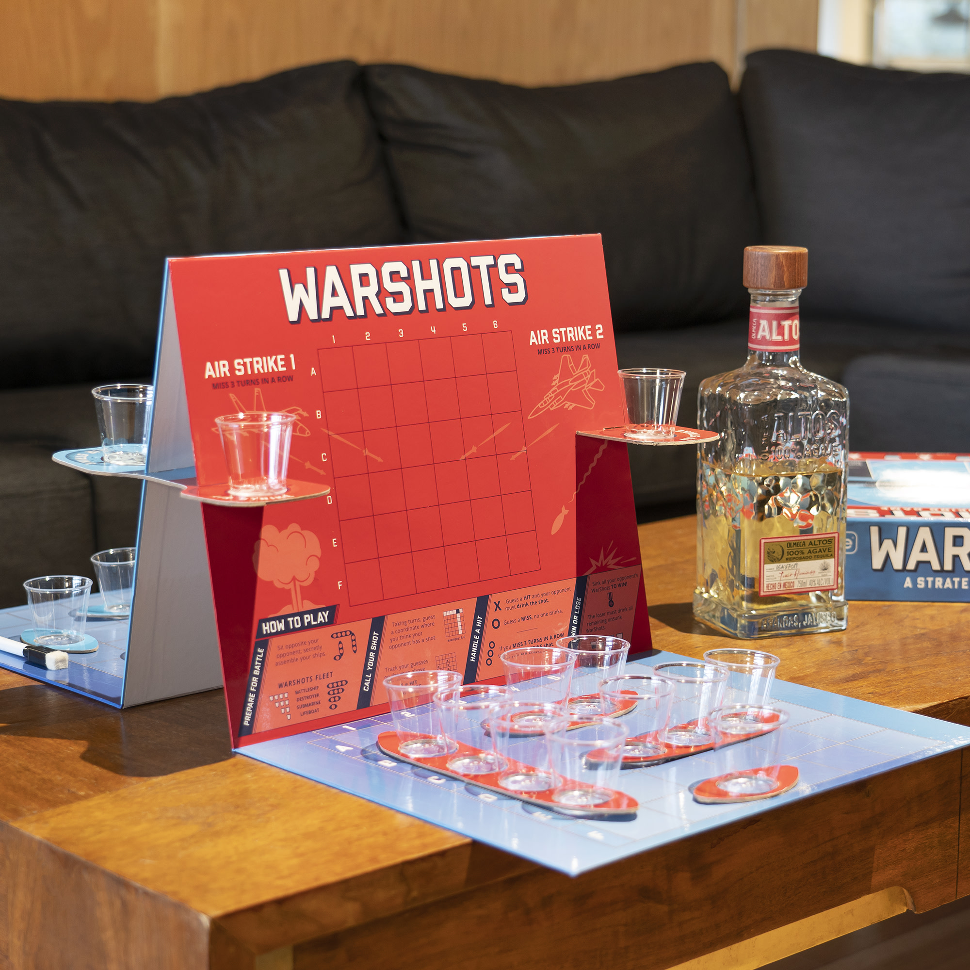 In this adult twist on a classic game, you call the shots to guess where your opponent is hiding their battle fleet. The only difference is that with this game, you also DRINK the shots! Challenge your friends to a battle of the bourbons, a fight of the tequila flights, or simply sink 'em to drink 'em with any favorite beverage!