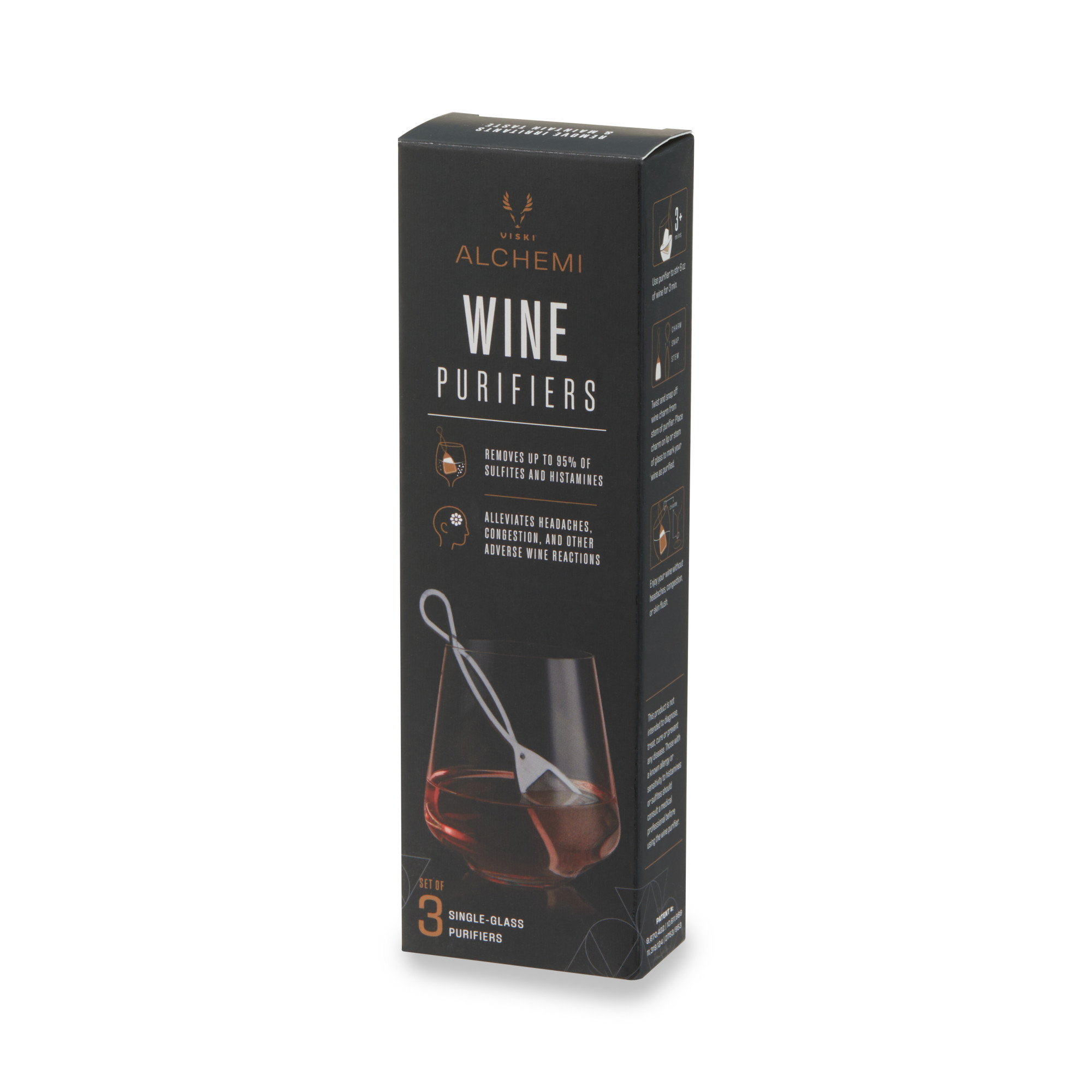 Purify your wine with the Viski Alchemi Wine Purifier. Utilizing Patented Nano-Pore Filtration and Ionic-Capture Technology, it effectively removes sulfites and histamines, common irritants that can cause unpleasant reactions, like headaches, congestion, and skin flush which occur for up to 75% of wine drinkers. This compact, BPA-free purifier ensures that each glass of wine retains its full flavor, color, and aroma, allowing you to enjoy your wine as the winemaker intended. Perfect for lovers who demand the best from their wine, the Alchemi Wine Purifier is your go-to tool for a refined drinking experience.