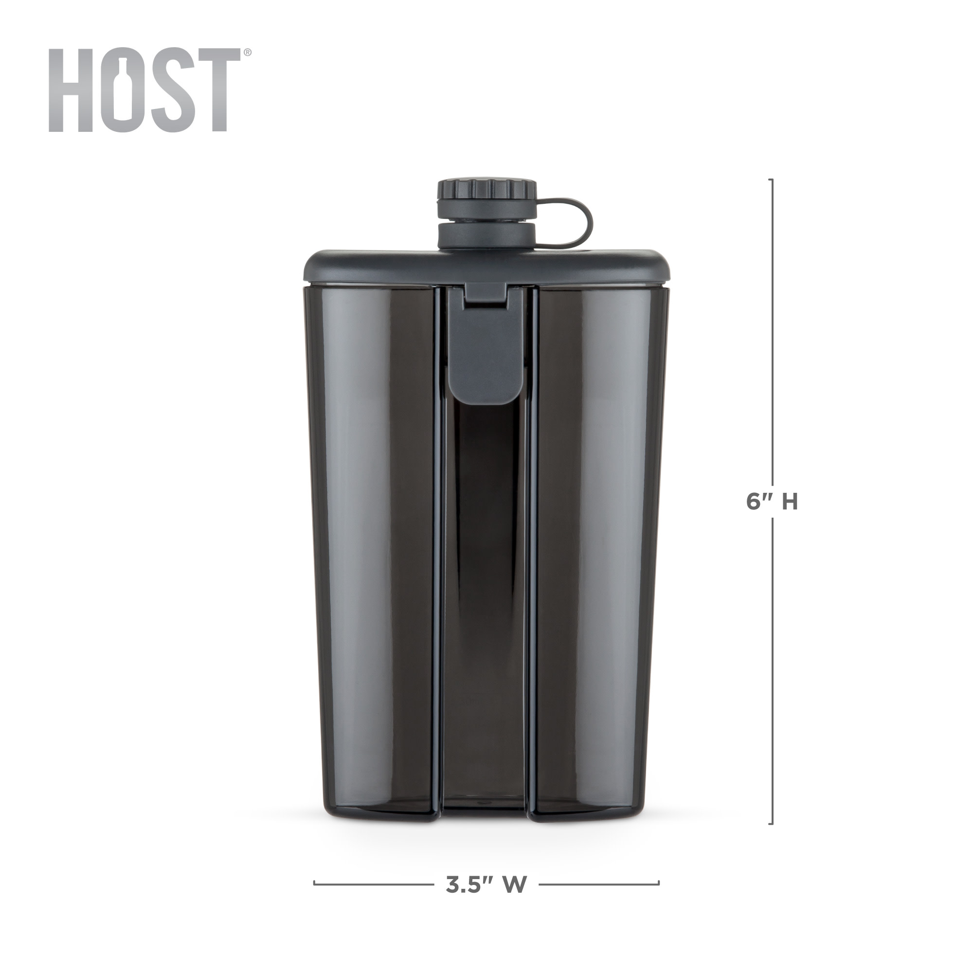 HOST®'s Easy-Fill™ FLASK carries 6 oz of your favorite beverage. Our proprietary closure snaps into place and locks liquids inside while the hinged lid ensures easy cleaning and refilling. Simply slide the portable flask into your backpack, pocket or on a carabiner clip, and you're outfitted for any rugged adventure.