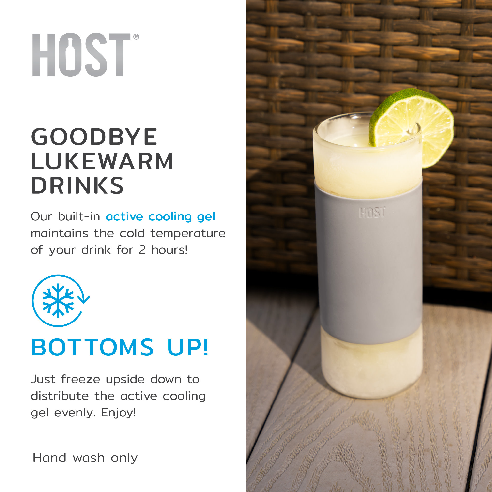 Watered down cocktails? In this economy? The double-walled Glass Highball FREEZE wants you to enjoy your G&T at your own dang pace. Modeled after our beloved Highball FREEZE but made with real glass, just pop it in the freezer to chill the built-in active cooling gel and keep your drinks chilled for 2 hours. 12 oz. Set of 2. Hand wash.