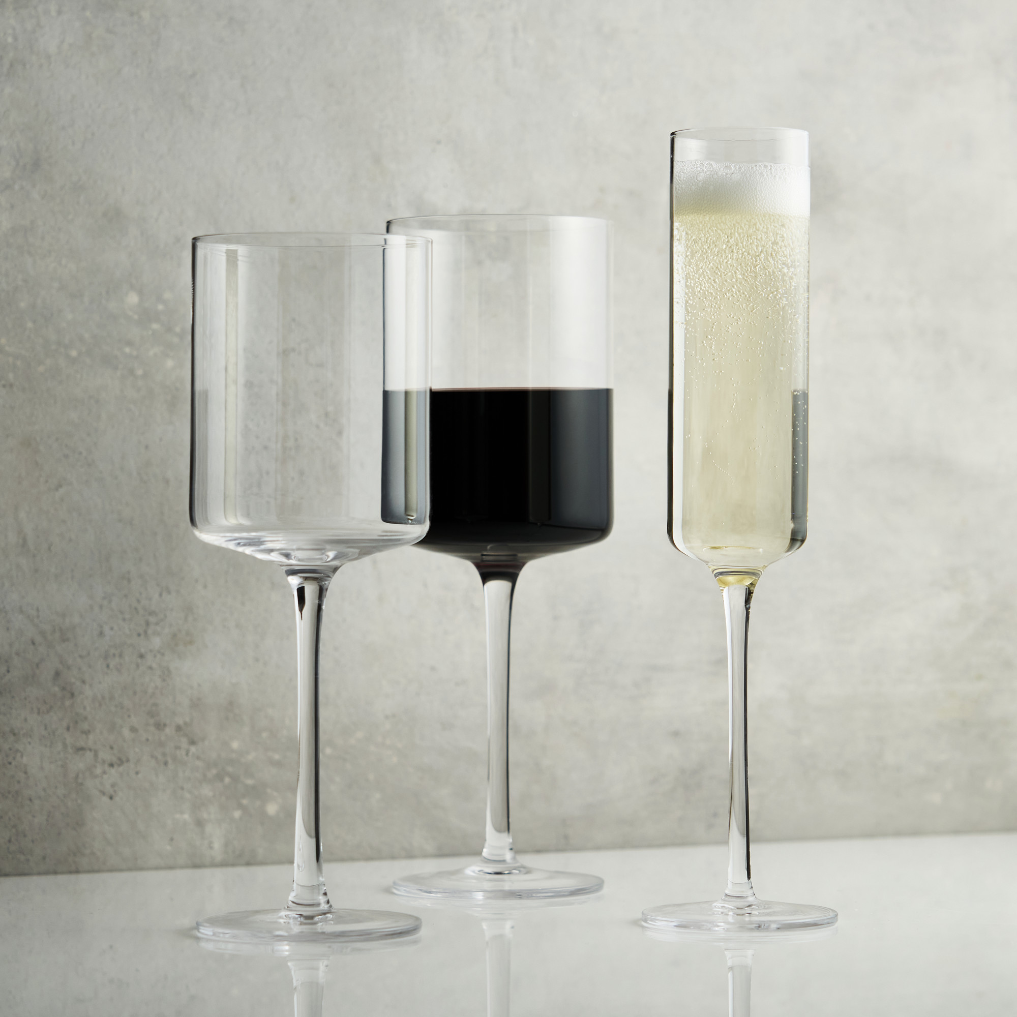 Made from lead-free crystal, this glassware has a unique square silhouette and tall, elegant stems. Perfect for sparkling wines, this stunning Champagne flute set brings a modern feel to your table. Set of 2 lead-free crystal stemmed wine glasses. 6.75 oz. capacity. Dishwasher safe, top rack only.