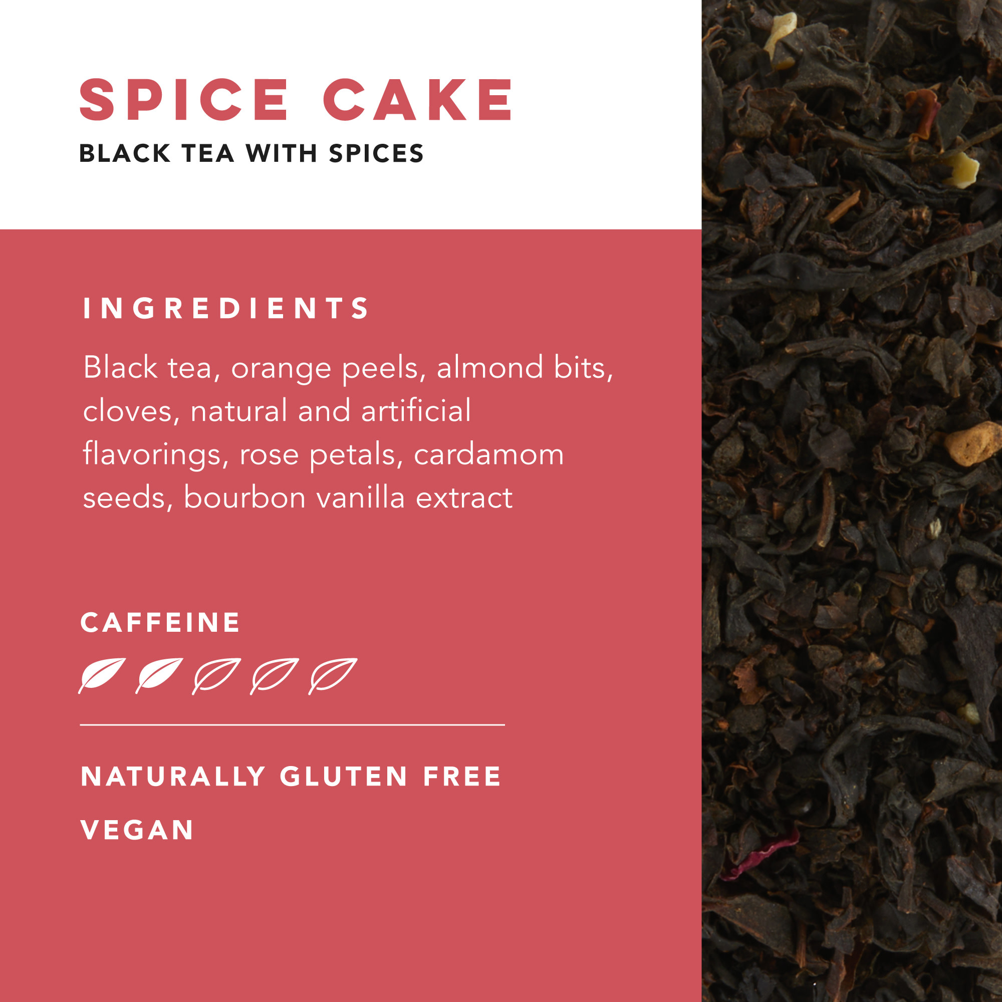 Cozy up with the rich, comforting flavors of Spice Cake Black Tea. This indulgent blend combines classic black tea with warming spices, nutty almonds, citrus, and hints of bourbon vanilla to evoke the warmth of winter festivities all year round. With oversized pyramid sachets designed to allow full leaf tea to expand, every cup delivers a smooth, aromatic infusion. Enjoy it hot or iced for a flavorful tea experience that’s perfect for any season.