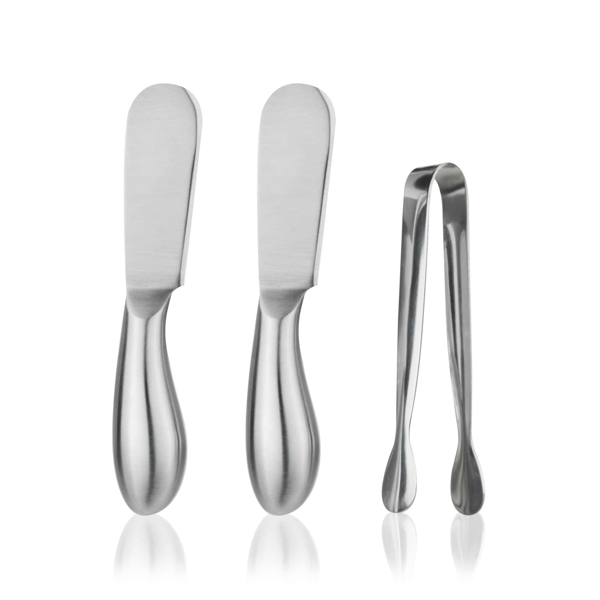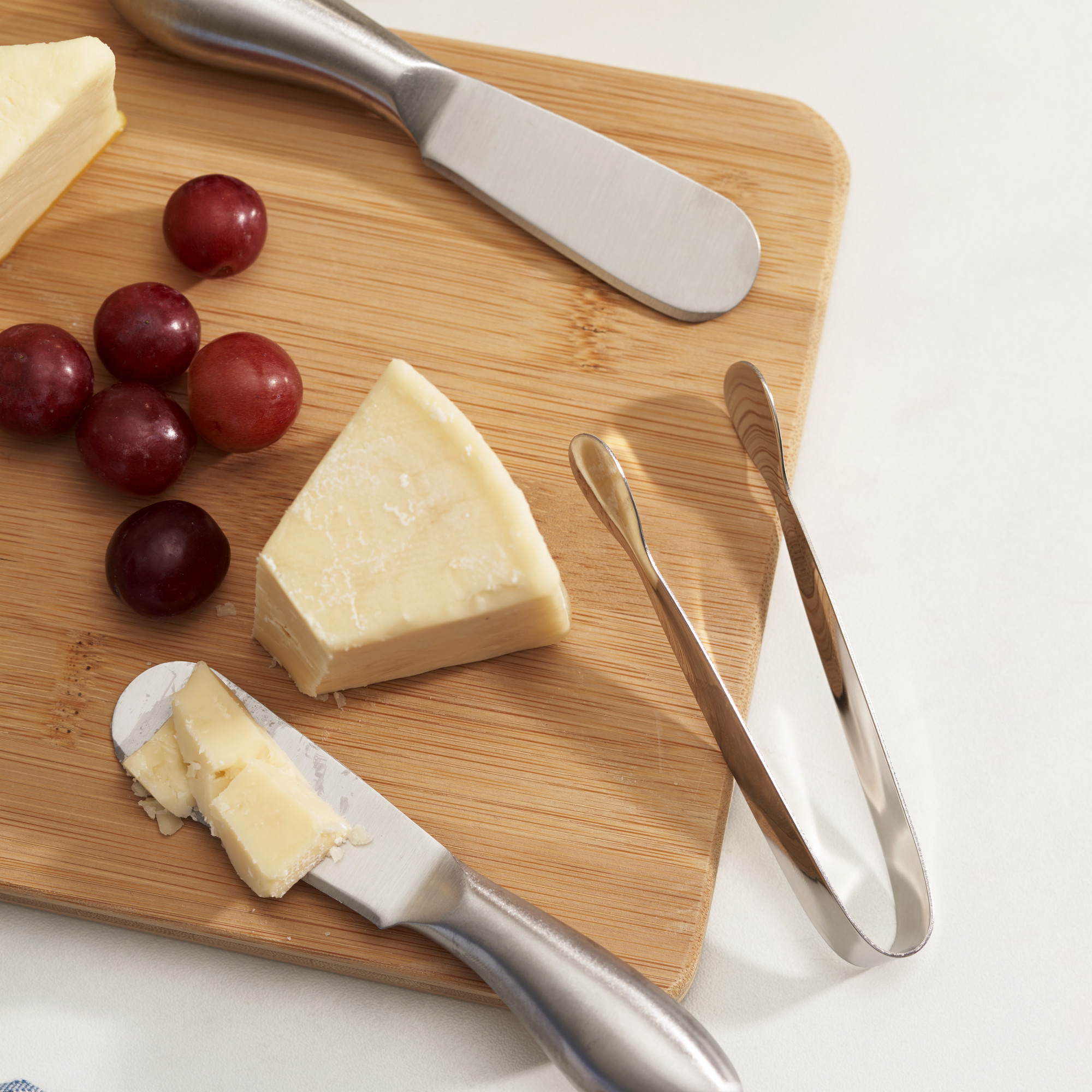 Serve cheese and charcuterie with ease. These versatile cheese tools are great for all kinds of appetizers, from soft and hard cheese to meat, butter, and garnishes. Sleek and simple, these compact knives and tongs are convenient and easy to store. Use the spreading knives as a small butter knife or as cheese spreaders and the tongs as charcuterie tools for your cheese board utensils. Charcuterie serving utensils make a great housewarming gift for anyone who loves to host. The small butter knife spreaders measure 5.3 inches long, and the tongs measure 4.3 inches. These stainless steel cheese knives are dishwasher safe for easy cleaning.