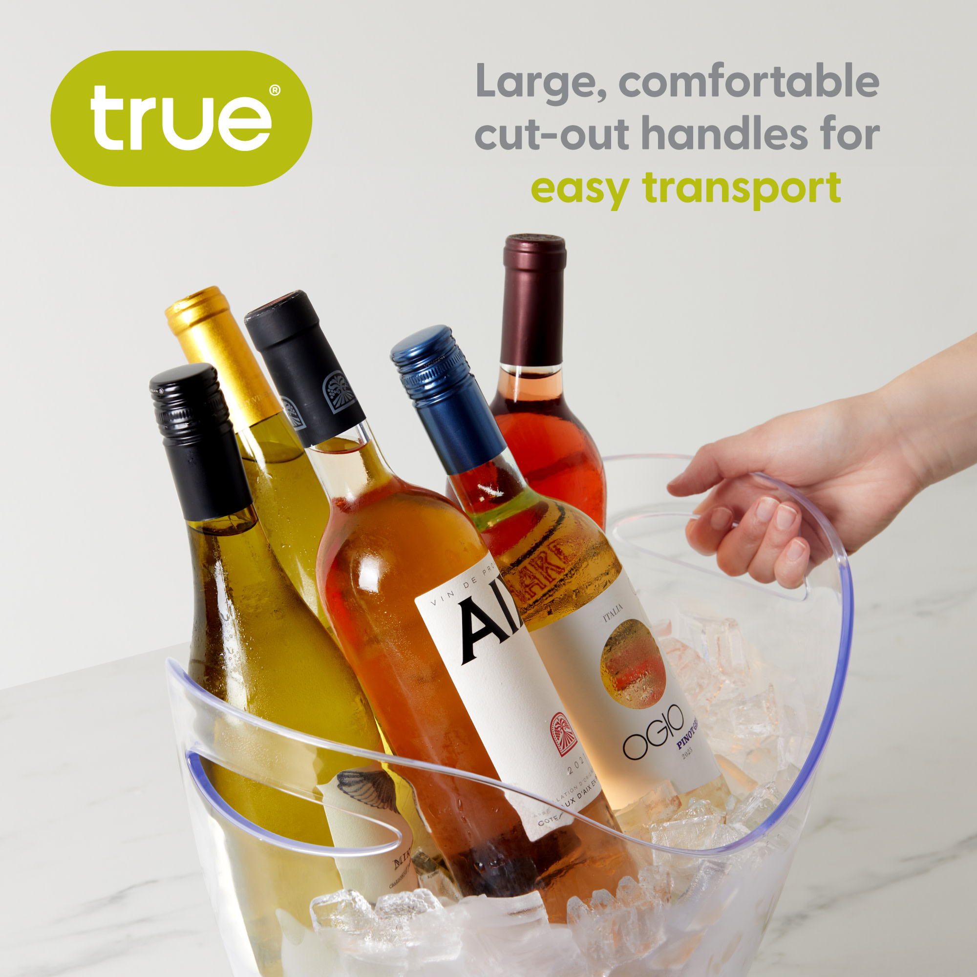Roomy, featherlight, and stylized, this modern ice bucket comes party-ready. It’s made of durable polystyrene with cut-out handles allowing for easy mobility. Low-cut sides make it easy to swoop in and grab another bottle. Clear ice bucket Holds 5 standard wine bottles 14" by 10.25" This streamlined, stylish ice bucket is perfect for keeping chilled wine cool and close whether on the dinner table, at a wedding, or by the beach. True crafts beautiful, functional wares for the modern host--entertain in style with basics done better.
