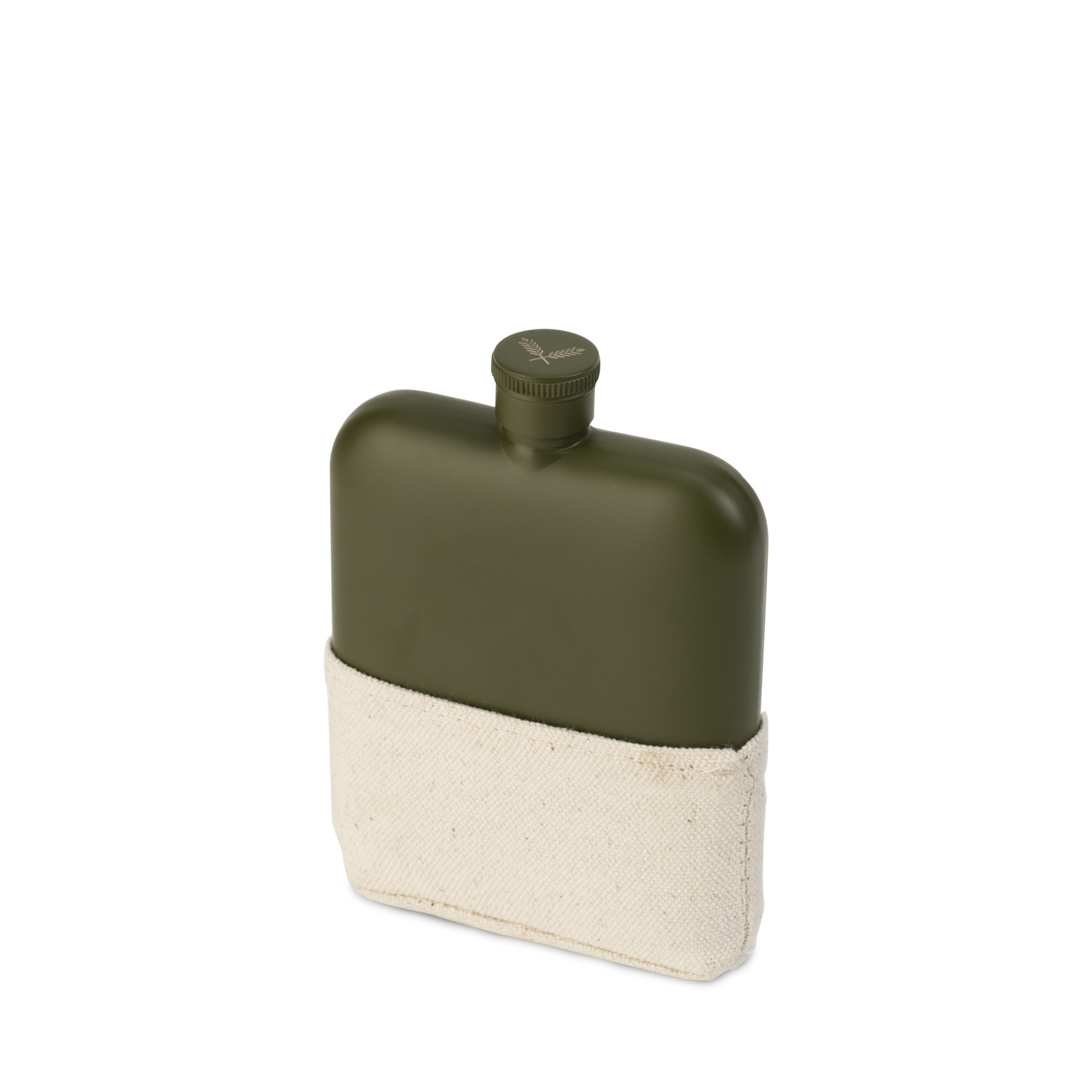 This is your Foster flask. There are many like it, but this one is yours. With a brass-tacks army green hue and sturdy canvas pouch, it's ready for active drinking duty.