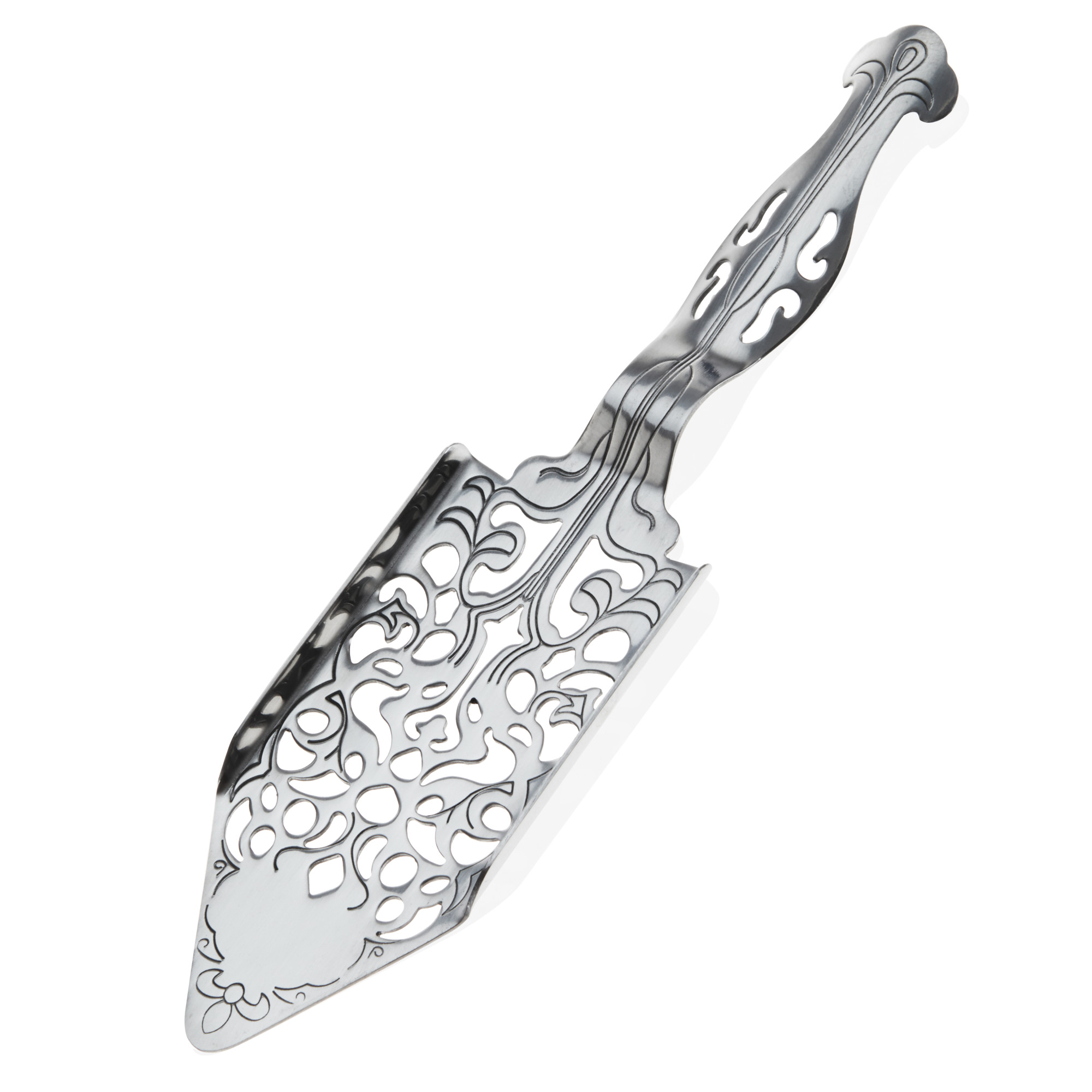 Made from durable stainless steel, this absinthe spoon is modeled after classic vintage designs. With delicate filigree adornments and intricate cut outs, it’s perfect for serving the infamous Green Fairy.