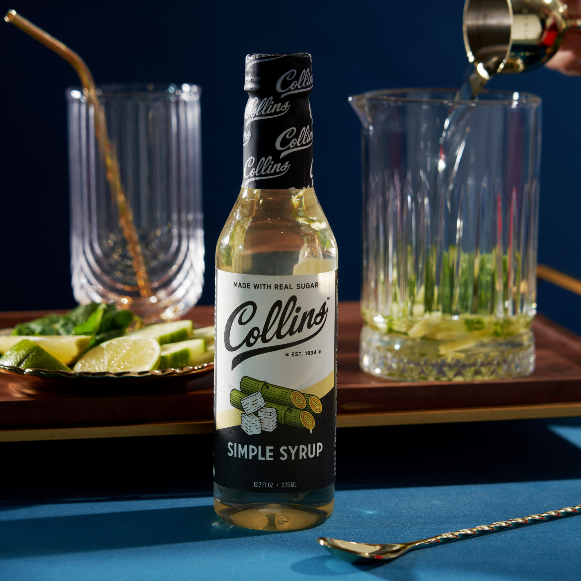 A best-seller and American classic, Collins Simple Syrup is a staple for any home bar. Made with real sugar, it offers the perfect complement to any craft cocktail or can be used as simple syrup for coffee, lemonade, or in desserts.