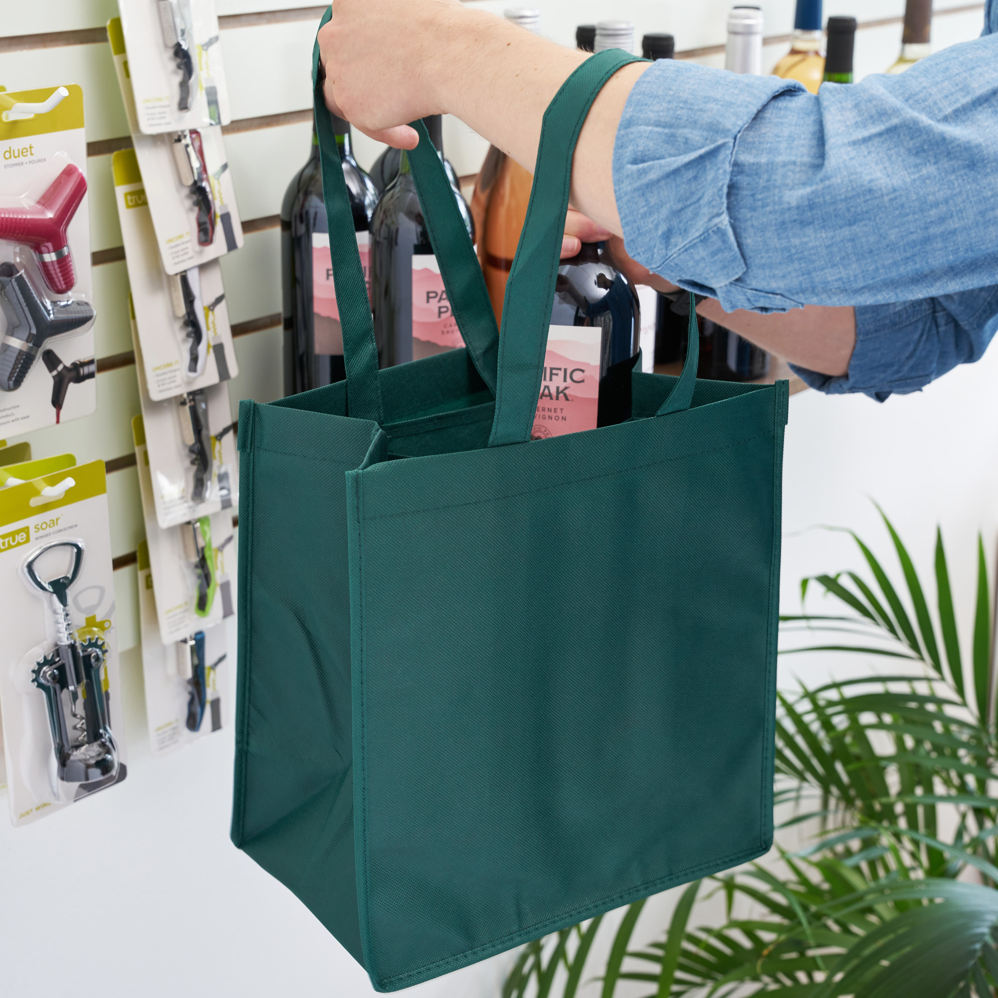 Being eco-friendly has never been so easy with our line of reusable bottle bags. With the high-quality, non-woven material and sturdy handles, you'll want to take this bag with you wherever you go.