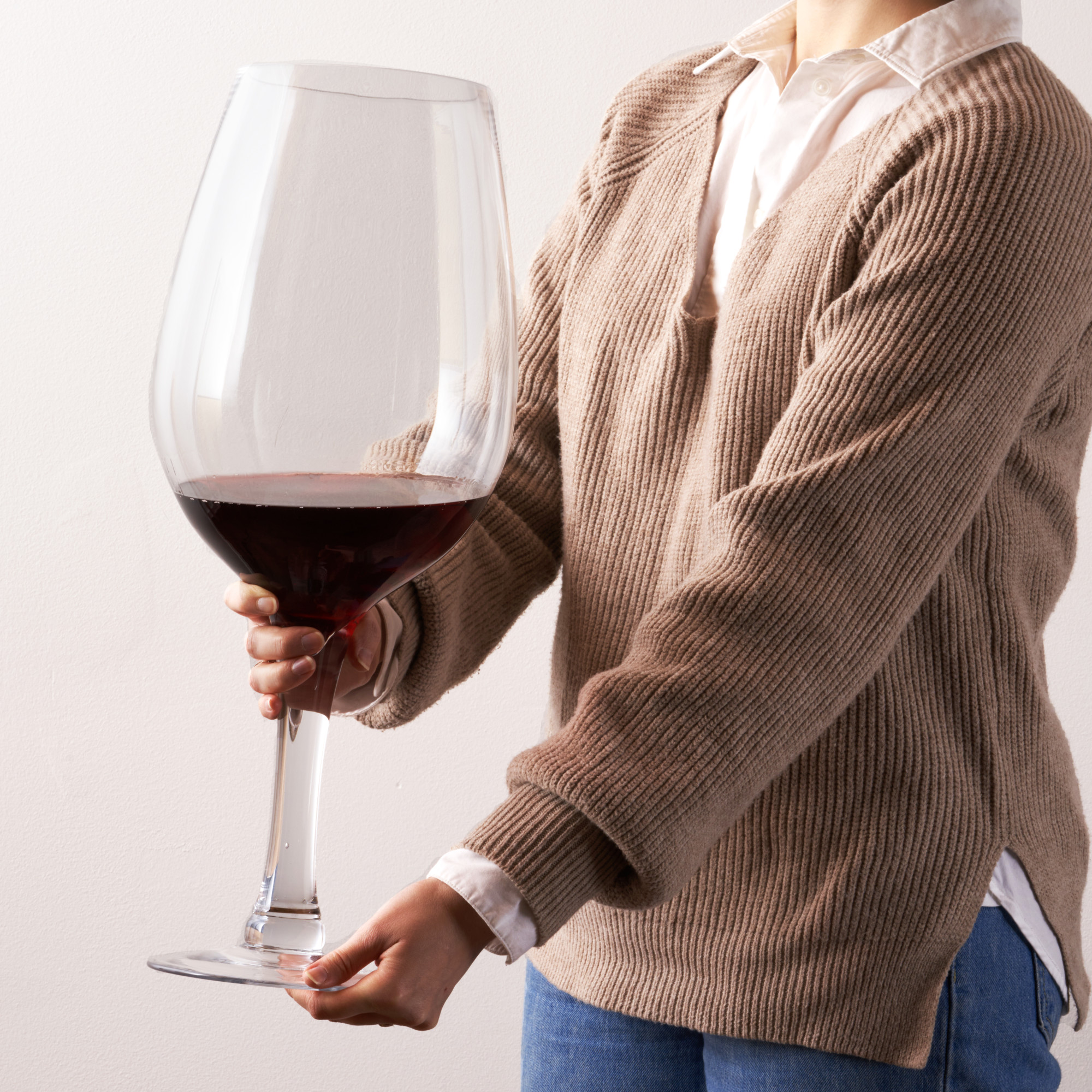 Crafted from real glass, these oversized Bordeaux wine glasses provide the same sophistication as regular drinking glasses but in an amusingly huge size. Perfect for wine, beer, juice, or even water, these extra-large wine glasses are versatile and fun. More than just a wine accessory, they can be used as a candy bowl, punch bowl, or raffle ticket drawing bucket, making them a versatile addition to your kitchen table decor or wine cellar. Perfect for bar cart accessories, these glasses can hold up to 200 wine bottle corks in an elegant manner, serving not only as decorative wine cork holders but also as striking pieces of bar decor. With a 1.5-gallon capacity, this Giant Wine Glass makes for a unique present that wine lovers will actually use, balancing humor and utility for the ultimate addition to any wine accessories collection or bar accessories. Additionally, this huge glass cup can be used as a centerpiece for your home decor, wine cellar, or wine tasting room table. Whether used as a champagne chiller ice bucket or a wine ice bucket, it adds a touch of elegance and fun to any setting. Ideal for wine enthusiasts or anyone who loves unique kitchen glassware.