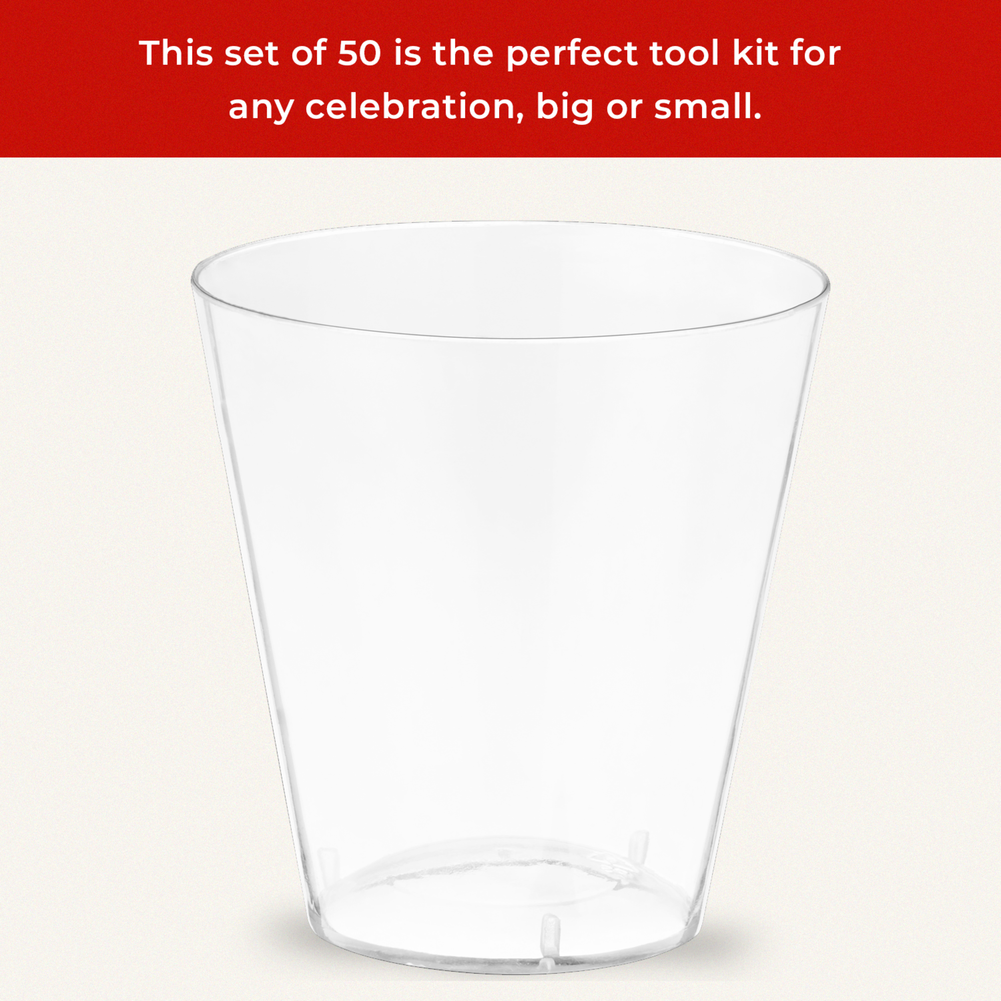 No matter the occasion, these disposable shot glasses guarantee a party. This set of 50 is the perfect tool kit for any celebration, big or small.