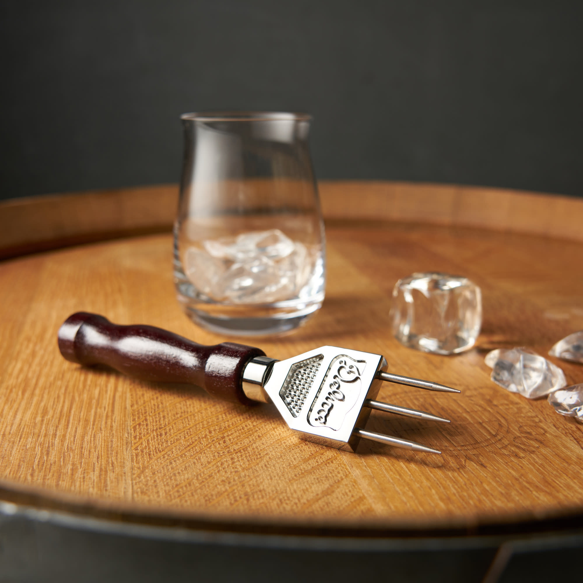 Chip away pieces of ice for a flawless frozen libation using the industrial strength of stainless steel. Curved stained wood tapers into three razor-sharp metal points, wielding enough force to crack and crush any chunk of ice with ease.