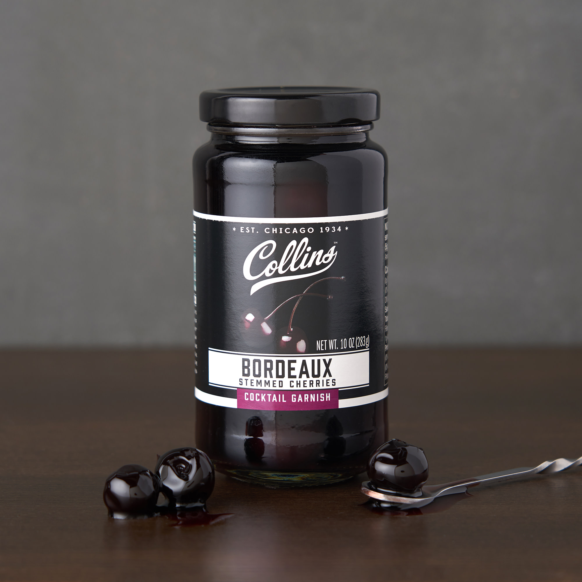 Stemmed Bordeaux Cocktail Cherries – Looking for cocktail cherries authentic in taste and look? These Bordeaux cherries are the real deal. They are darker than other red cherries, which promotes a refined cocktail that oozes sophistication and class. No preparation is required – just take a few from the jar, and then drop them into any cocktail or side dish. Cocktail making is an art. In fact, every detail matters. Whether you’re making a Manhattan or Old Fashioned, you need cherries that retain their shape and texture even within even the booziest of creations. The Collins Way – The year is 1934, and on North Clark Street in Chicago, Collins Brothers have just opened their doors to sell a simple metal bottle opener and homemade grenadine. Since then, Collins Brothers has expanded their range to include a variety of garnishes, mixers, and syrups. Being recognized for outstanding service has remained at the forefront of our brand philosophy, and always will. In the unlikely event that you’re not satisfied; we’ll replace your cherries or return your money. Fantastic Gift – These stemmed cherries for manhattan are ideal for Christmas, birthdays, anniversaries, or as a special treat for that cocktail-lover in your life. They are also the perfect item to take to any dinner party or evening gathering.