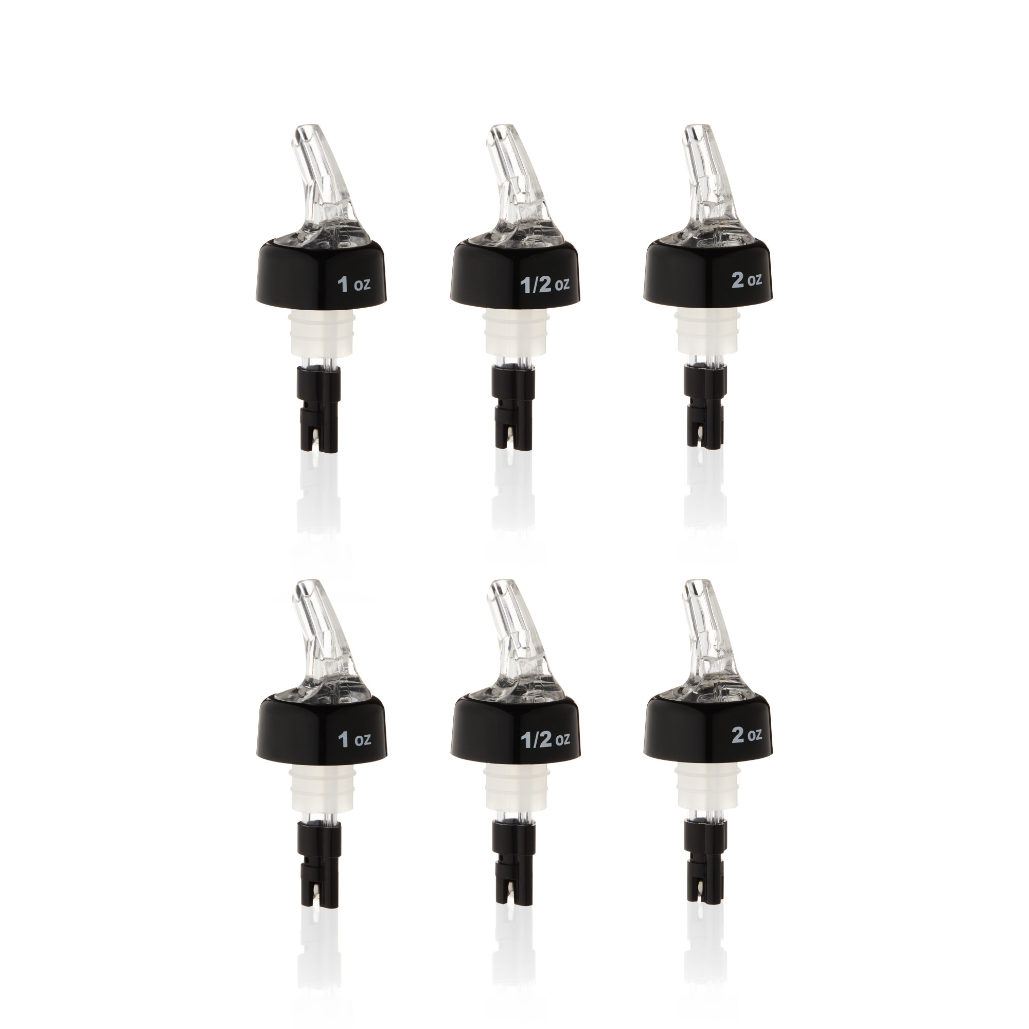 Perfect your free pour skills with this set of measured liquor pour spouts. With spouts designed to pour in increments of ½ oz, 1 oz, and 2 oz, you can effortlessly pour and mix cocktails with perfect ratios every time. Fits standard wine and liquor bottles.