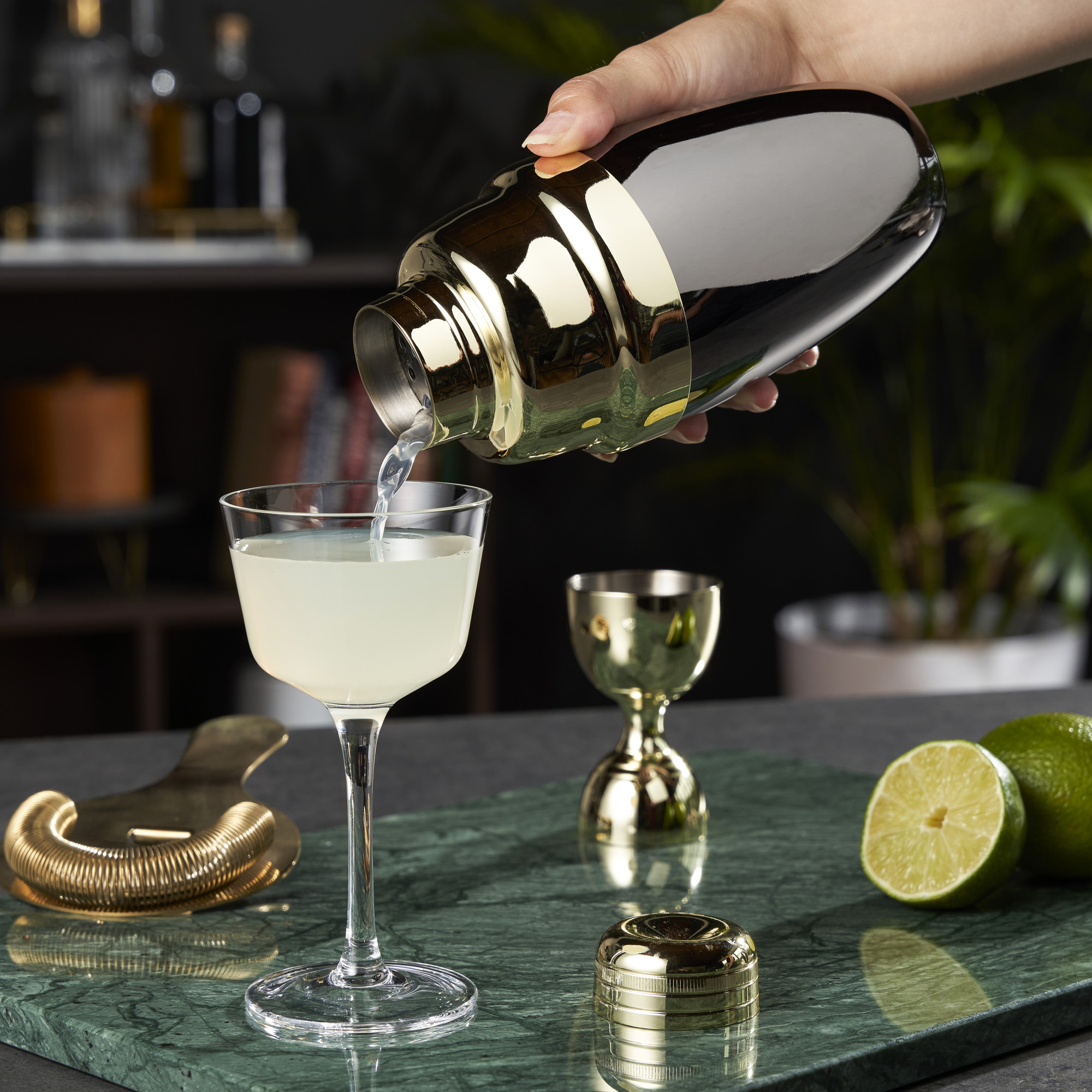 Our essential heavyweight cobbler shaker is a carefully crafted matter of heft, balance and contour combined with utter precision in functionality. Designed exclusively by professionals for professionals, this substantial two-tone gold and gunmetal cocktail shaker is the cornerstone of any professional bar set.