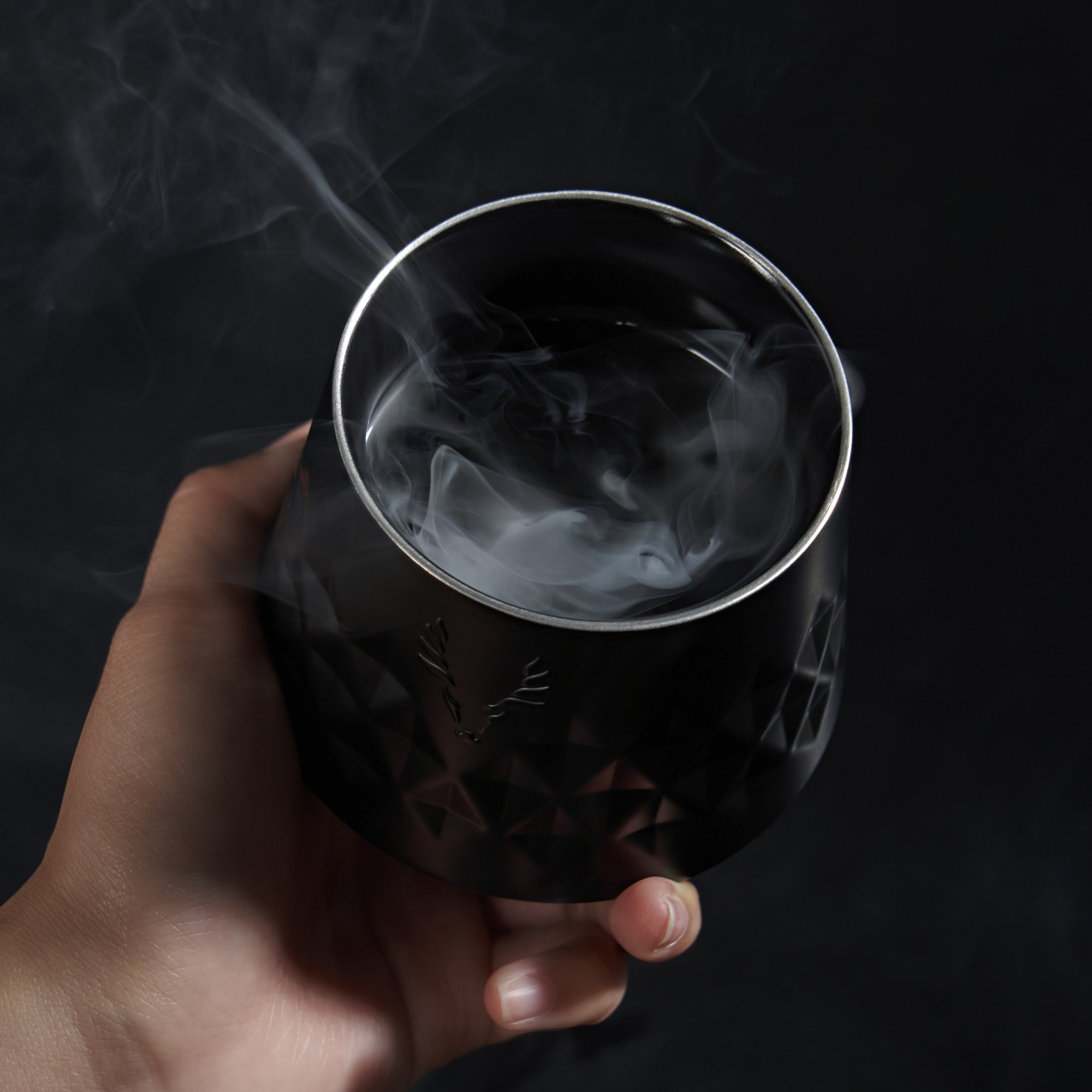 This double-walled stainless steel whiskey tasting glass maintains your drink’s temperature without sacrificing your sipping experience. The TrueTaste ceramic coating inside these insulated cocktail tumblers protects your spirits or craft cocktails from developing a metallic aftertaste when you're sipping al fresco, while the thin rim and faceted design elevate this insulated drinkware. This insulated whiskey glass even includes aerating ridges inside to help bring out the flavors of your whiskey. They make great a stainless steel whiskey glasses or insulated cocktail glasses that keep your drinks cool. They’re even great coffee tumblers.