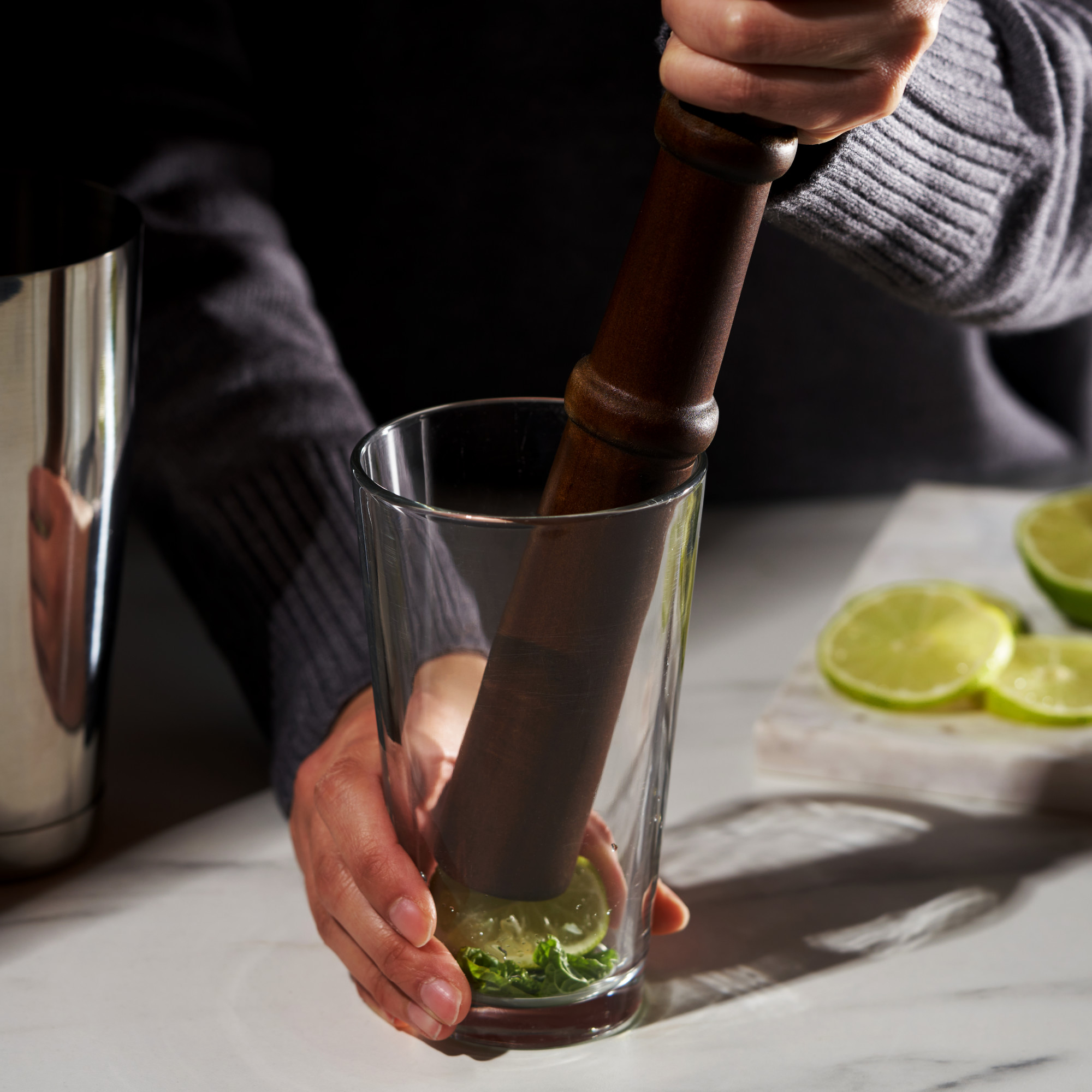 A good muddler needs to evenly crush fresh herbs and fruit to release flavor. Aromatics are the most important part of many cocktails, including mint juleps, mojitos, and caipirinhas. Substantial yet lightweight, this hardwood muddler flairs out to a large flat mashing base. 12-inch length gives you more leeway than the average muddler, so it can reach the bottom of the largest mixing glasses or shakers. 12 inches long. Acacia wood. Hand wash recommended.