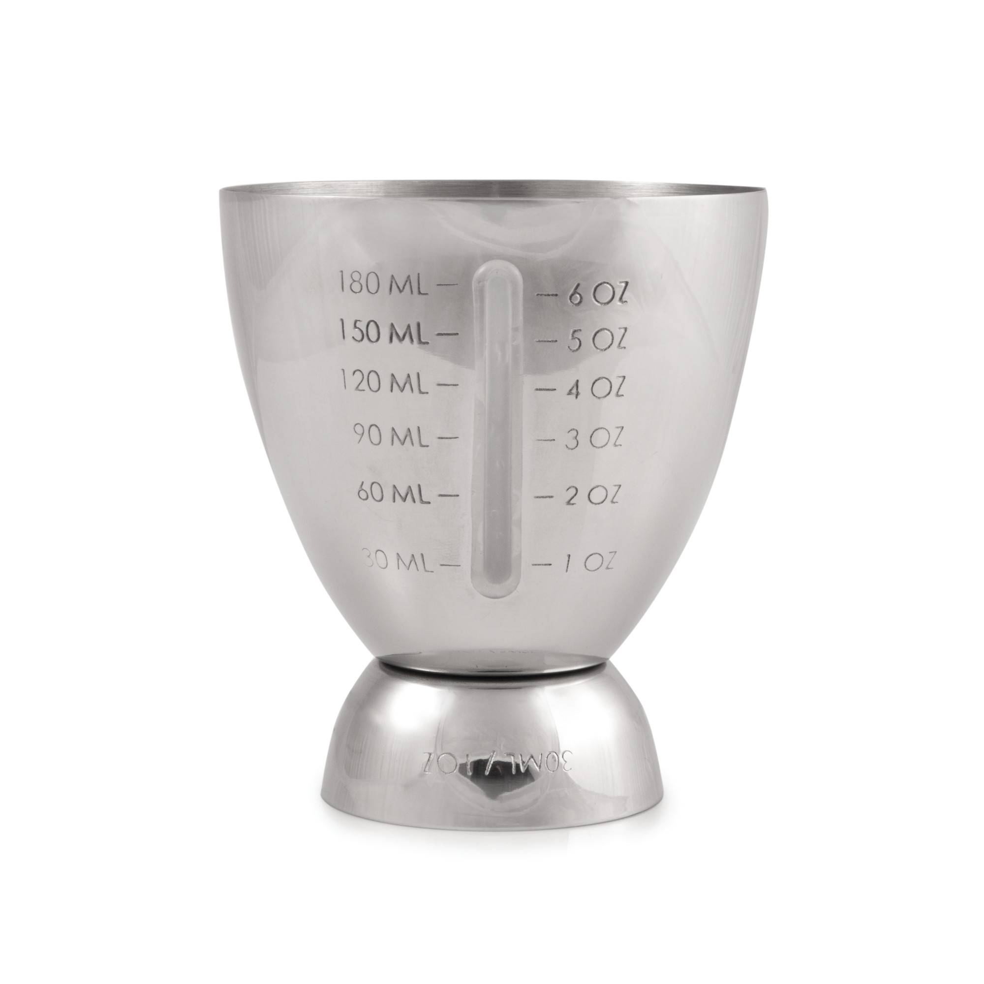 Introducing the True Vista Double Jigger for Bartending - a must-have tool for all your cocktail crafting needs! This stunningly handsome, gleaming silver polish, stainless steel jigger is a versatile addition to your bar essentials. With its 6 oz measuring cup for cocktails, you're set for a heavy pour or perfect for mixing up batch cocktails. Whether you're serving whiskey, wine, or a classic cocktail, this alcohol measuring cup is generously sized to accommodate your pouring needs. But that's not all! The Vista Double Jigger also boasts a 1-ounce cocktail jigger base, making it the ideal whiskey measuring cup. With standard and metric notations etched directly onto the jigger, you'll get perfect accuracy every time. It's more than just a liquor measuring jigger, it's a tool for mastering the art of mixology. Crafted from classic stainless steel with a gleaming finish, this bartender measuring cup is as elegant as it is durable. It's not just a functional tool, but an elegant addition to your barware collection. So whether you're a professional bartender, a home mixologist, or just someone who appreciates a well-made drink, the True Vista Double Jigger is the perfect companion for your bartending adventures.