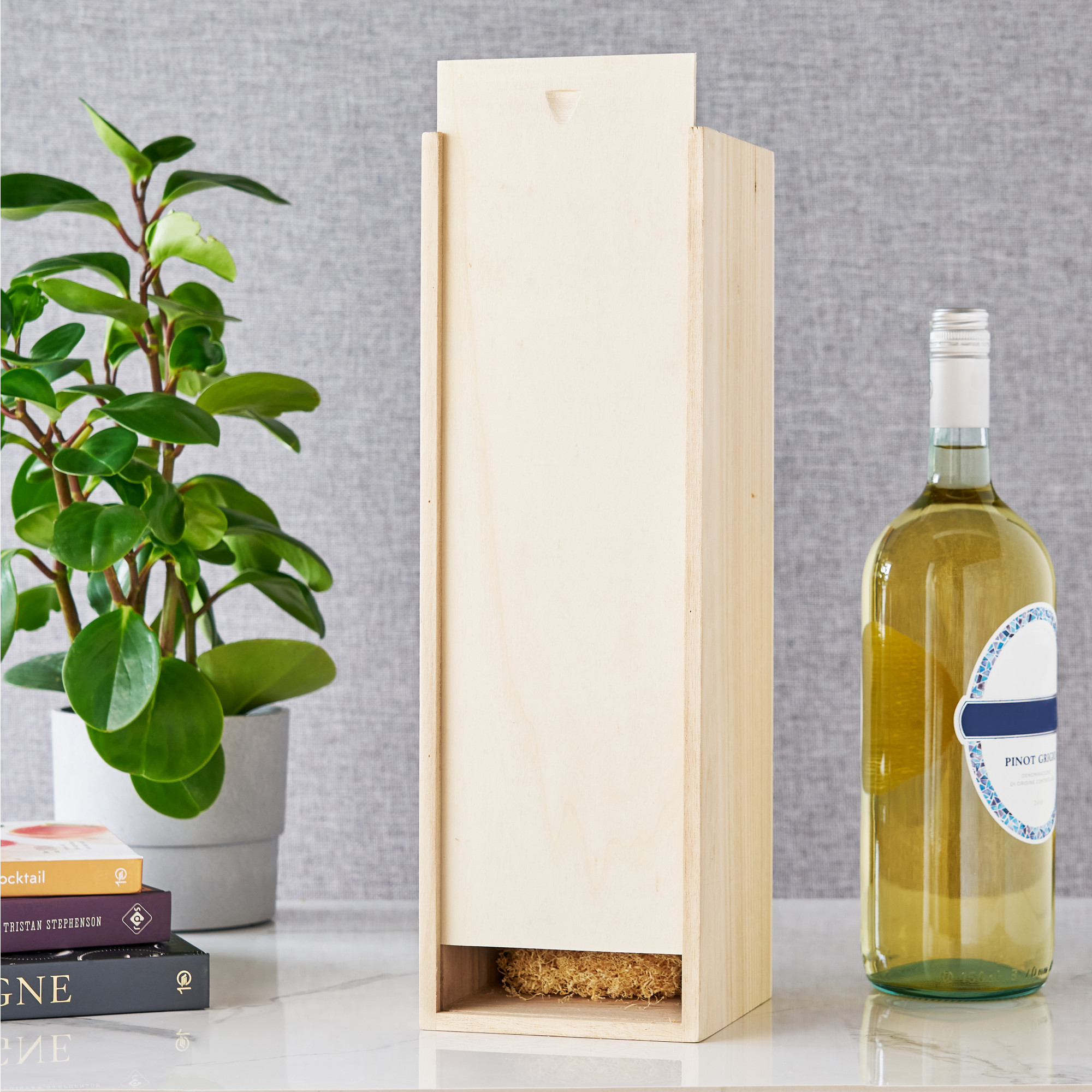 Tuck 1 magnum bottle of wine away in a light, lithe wooden box to rest padded by packing straw until you’re ready to open it up. Decorate this minimalist wooden box with ribbons, paint, and more or leave it simple and elegant. Made from paulownia wood with a sliding lid and includes packing straw. Accommodates 1 magnum wine bottle. 5.25″ x 16.5″ x 5.25″.